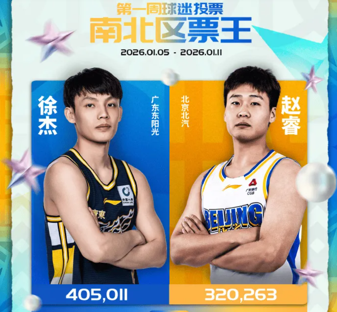 2026CBA全明星赛,首周投票具体情况如下: